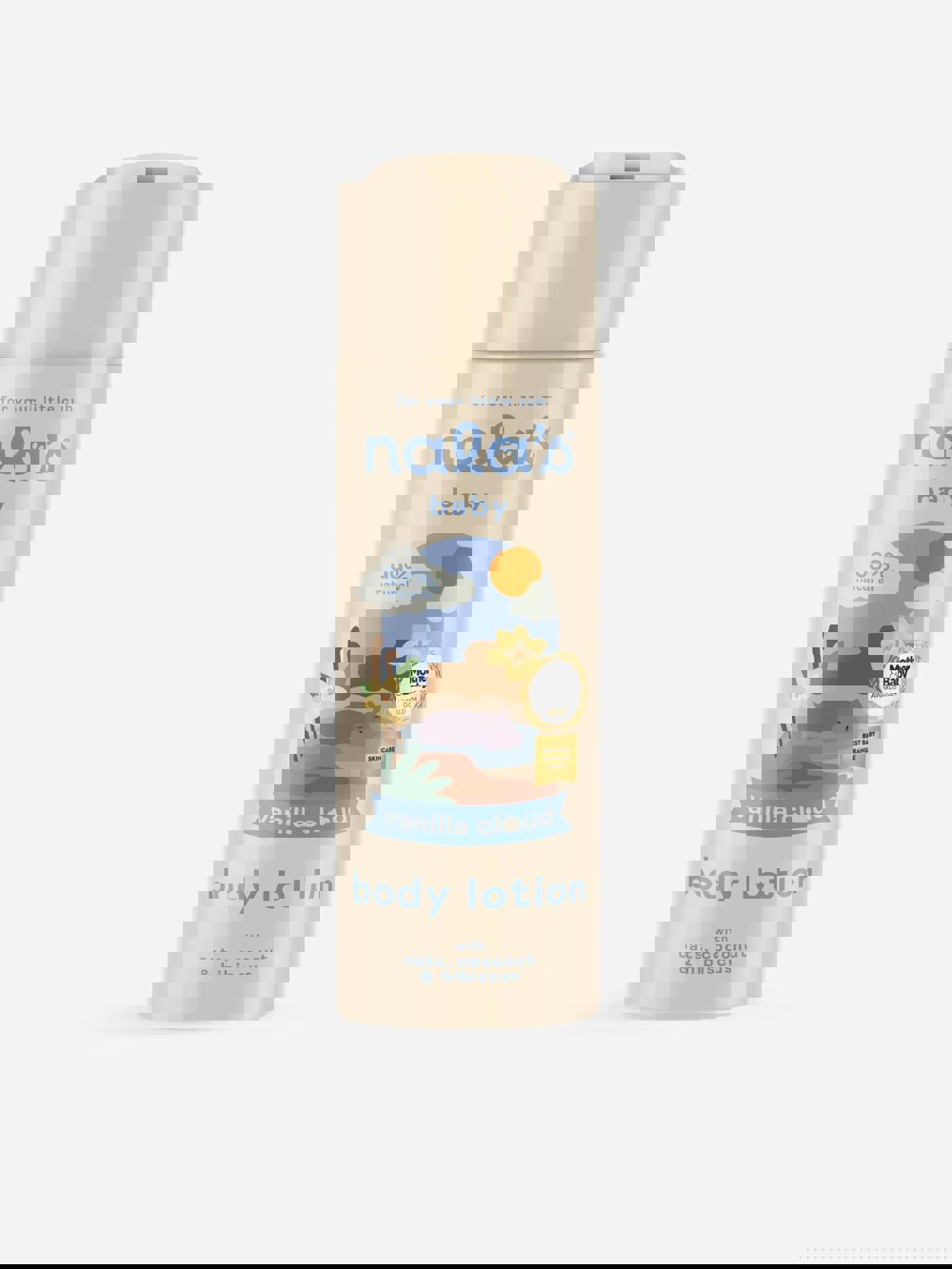 Nala’s Baby Body Lotion Vanilla Cloud is a gentle body lotion created to nourish and soothe delicate baby skin. Designed for everyday use, it helps keep skin soft and moisturised, making it a comforting choice after bath time. The formula is lightly fragranced with a calming vanilla scent, leaving skin smooth and subtly scented.