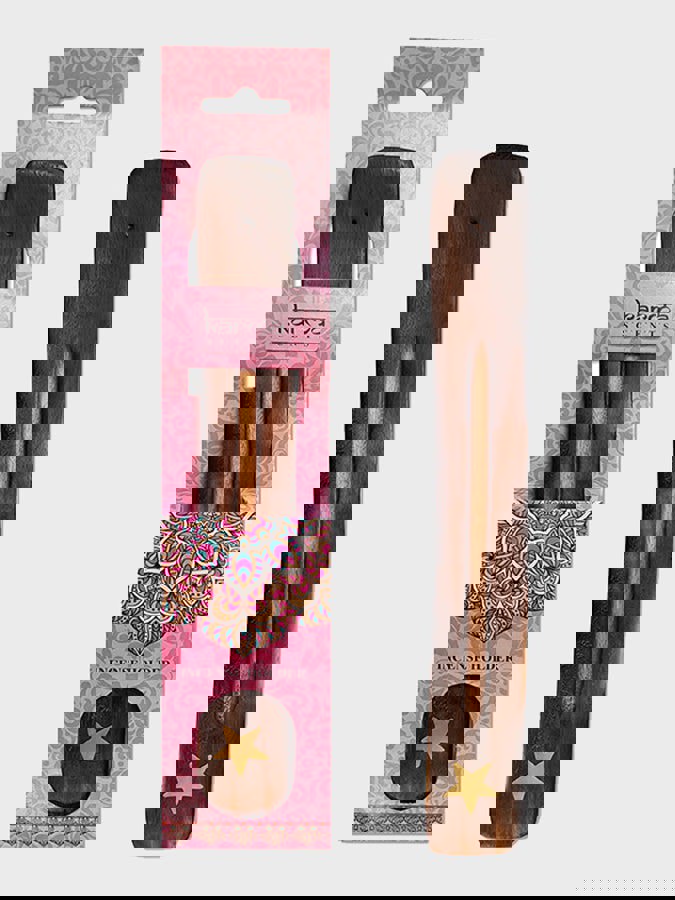 Namaste Karma Scents Brass Inlay Mango Wood Incense Ash Catcher Holder - Star