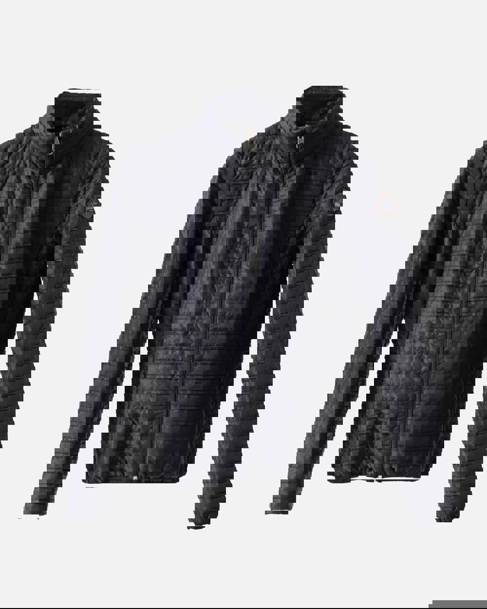 Down-free padded jacket in ripstop polyamide fabric, with zip fastening pockets.