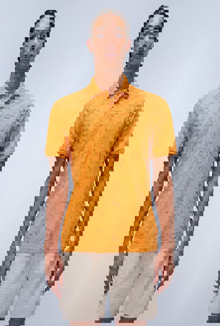 Made of soft, sturdy 100% cotton piquet fabric, the Brolio short sleeve polo shirt is a sporty classic updated with all-over embroidery and the signature Napapijri logo on the chest.