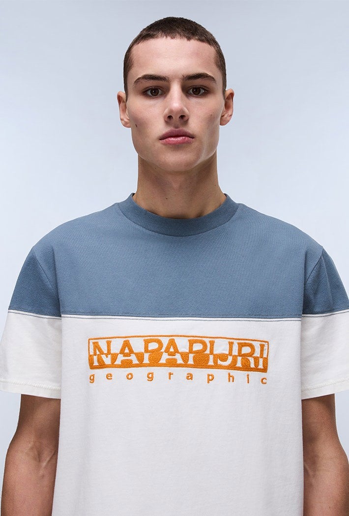 Cool and comfortable thanks to 100% cotton, the Saturnia short sleeve t-shirt has a crew neck, colourblocking and a laid-back loose fit. It's finished with a bold orange Napapijri Geographic logo on the chest.