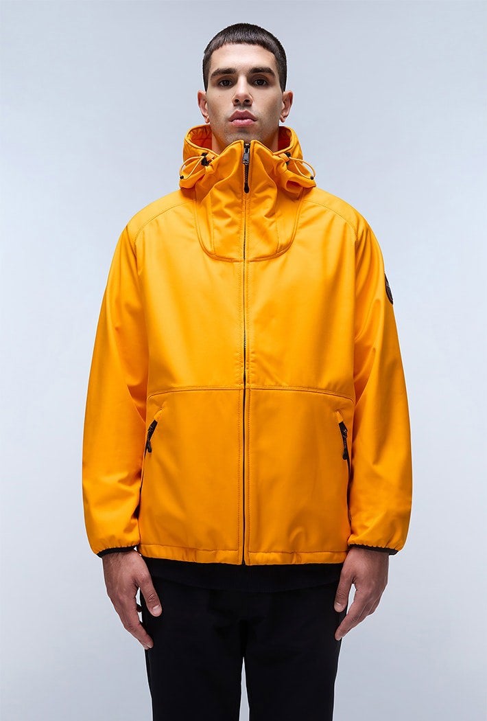 The Wildhorn jacket is a sports-inspired technical outer shell made from breathable, water-resistant recycled fabric. It features an adjustable hood, slanted hand pockets and our signature Napapijri badge.
