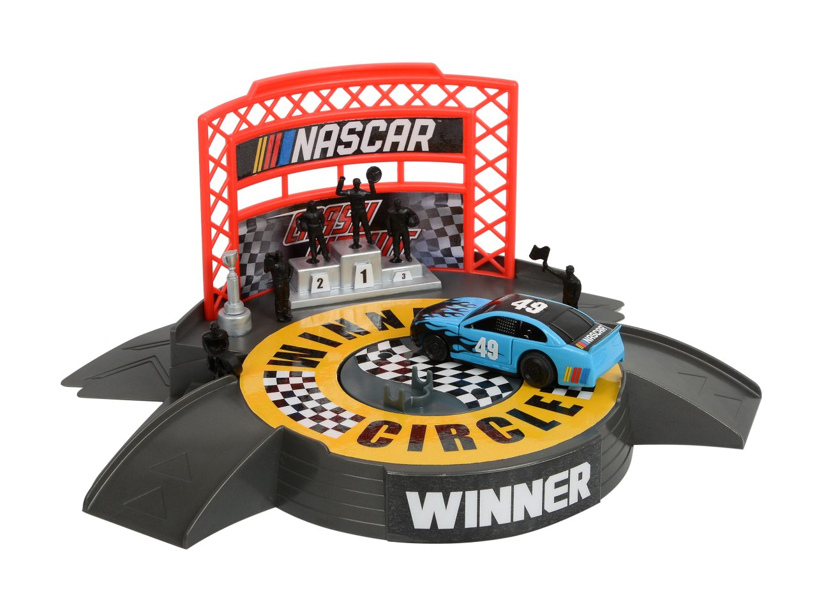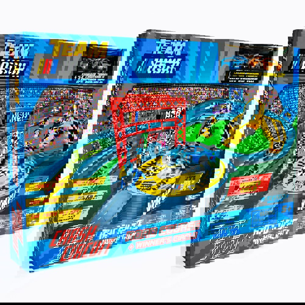 Experience high-speed, crashing NASCAR action with the Far Out Toys NASCAR Crash Circuit: Road Course Playset! This thrilling electric race track set brings the excitement of road course racing home. Kids aged five and up can launch the included flash charger vehicles onto the challenging circuit, featuring tight turns and opportunities for spectacular crashes. Watch as the cars race side-by-side, battling for position before celebrating victory in the Winner’s Circle. The NASCAR Crash Circuit Playset is designed for fast-paced action and demolition fun – the cars are built to crash and easily snap back together for continuous racing. The flash chargers power up the vehicles quickly for repeated high-speed runs. This Far Out Toys NASCAR Crash Circuit: Road Course Playset encourages competitive play and provides hours of racing excitement.