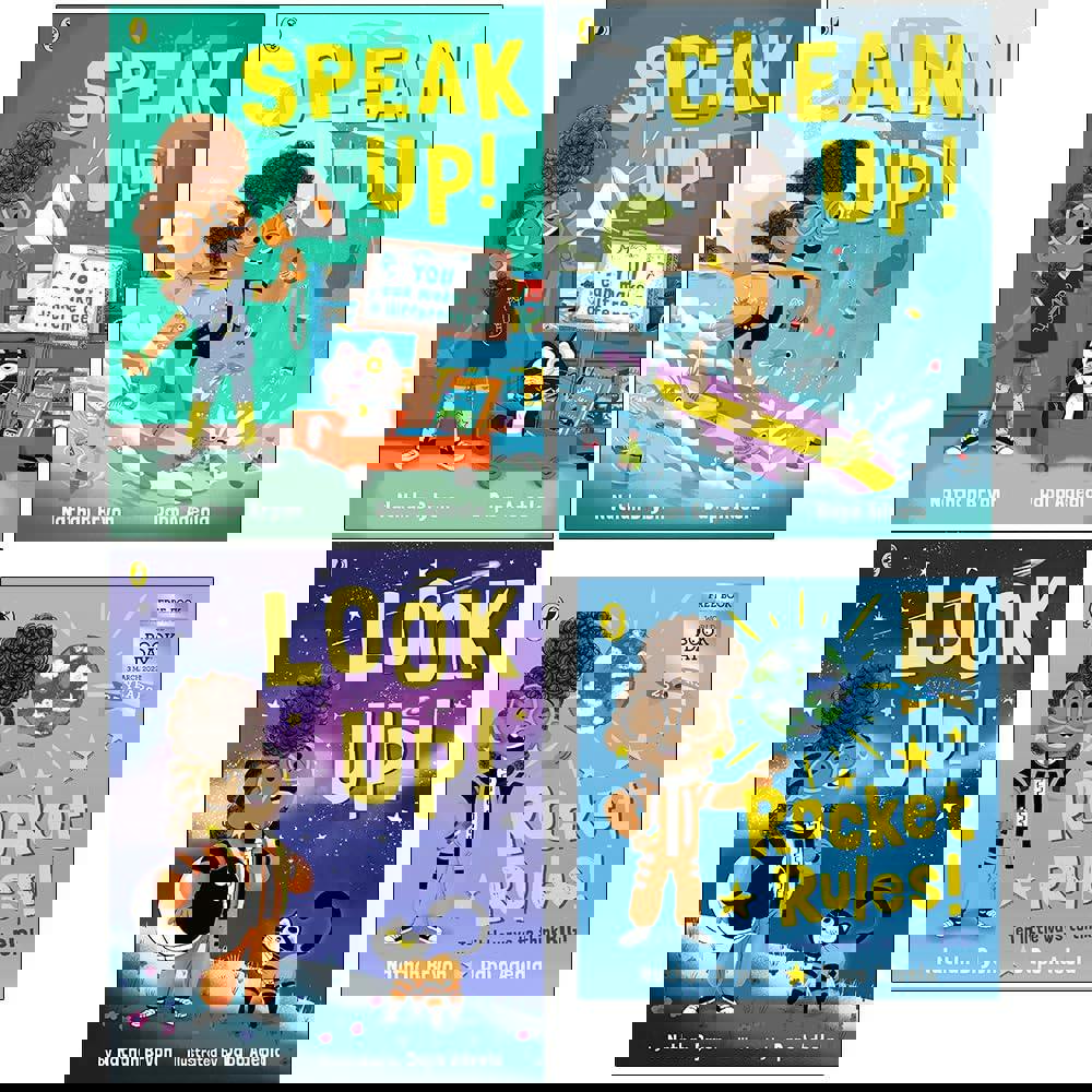 Including Speak Up!, Clean Up!, Look Up! and Rocket Rules World Book Day, the set follows Rocket as she organises a peaceful protest to help save her local library, sets sail on a mission to protect a Caribbean island from plastic pollution, and tries to persuade her big brother to stop looking at his phone and start looking up at the stars.