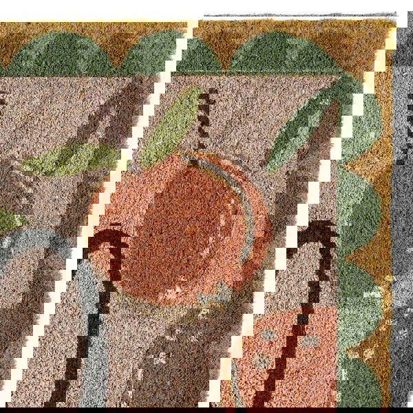 Welcome guests in style with the Natural Ciao Orange Coir Doormat – 45 × 75 cm. Crafted from sturdy coconut fibres, this mat efficiently traps dirt and mud while adding a vibrant, playful touch with its illustrated orange design and green scalloped border—perfect for entryways, porches, or mudrooms.