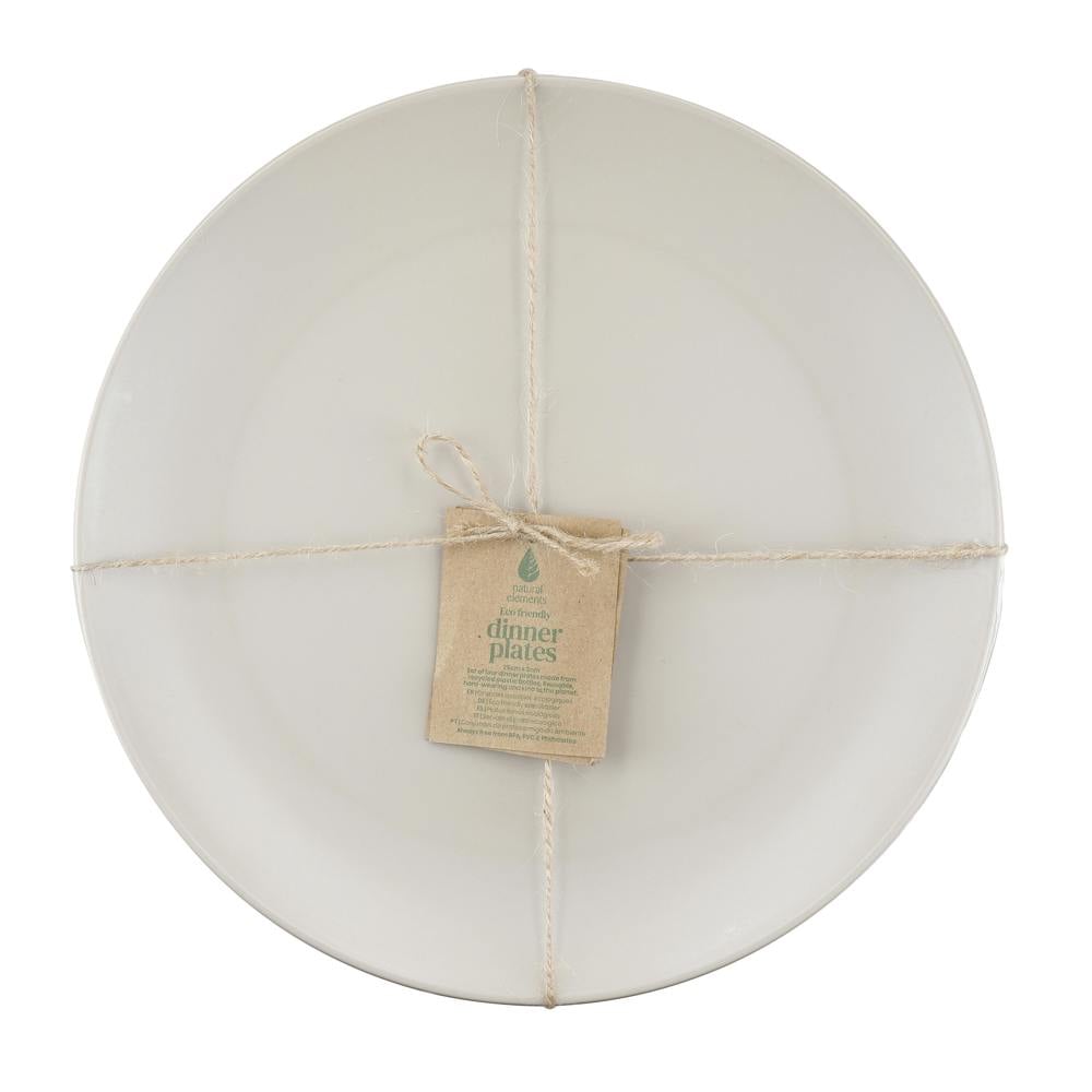 Keep an eye on your carbon footprint and ditch the disposable plastics when hosting parties and picnics! These reusable dinner plates from Natural Elements provide an eco-friendly alternative to single use plastics. Made of recycled plastic which is not only kinder to the planet, they are super long-lasting - whether it's a BBQ in the garden, a kids party or catering for impromptu extra guests, these plates are more than tough enough for the task. Finished in a neutral putty shade with a leafy pattern, they look more appealing than store bought plastic or paper plates, too. They match perfectly with other items in the Natural Elements outdoor dining collection, including cutlery, bowls and plates. Set of 4. Measures 25. 5cm.