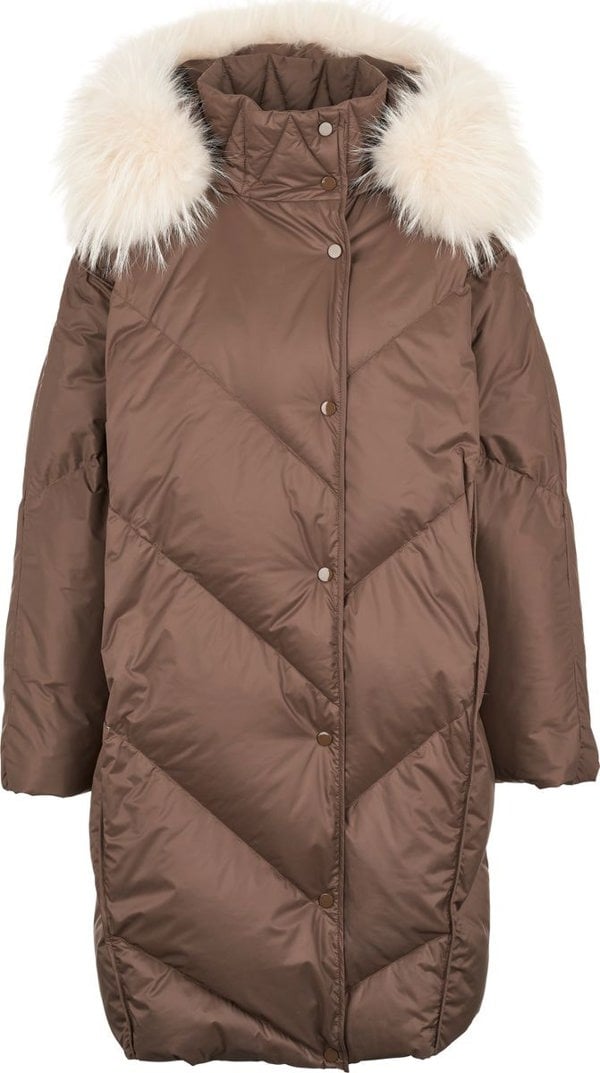 Mikala is a very soft and warm coat of goose down and fox fur. The coat has an oversized fit and the hat is covered with exclusive fox fur around the hem. The coat has two pockets and close with a beautiful zipper and press studs.