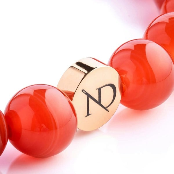 Adjustable Carnelian gemstone wrist bracelet in red with 14K gold 2" (5cm) extender chain, allowing fitting of different wrist sizes. Featuring 8mm smooth, round natural mineral red Carnelian gemstone beads, handcrafted together using high quality gold wire.