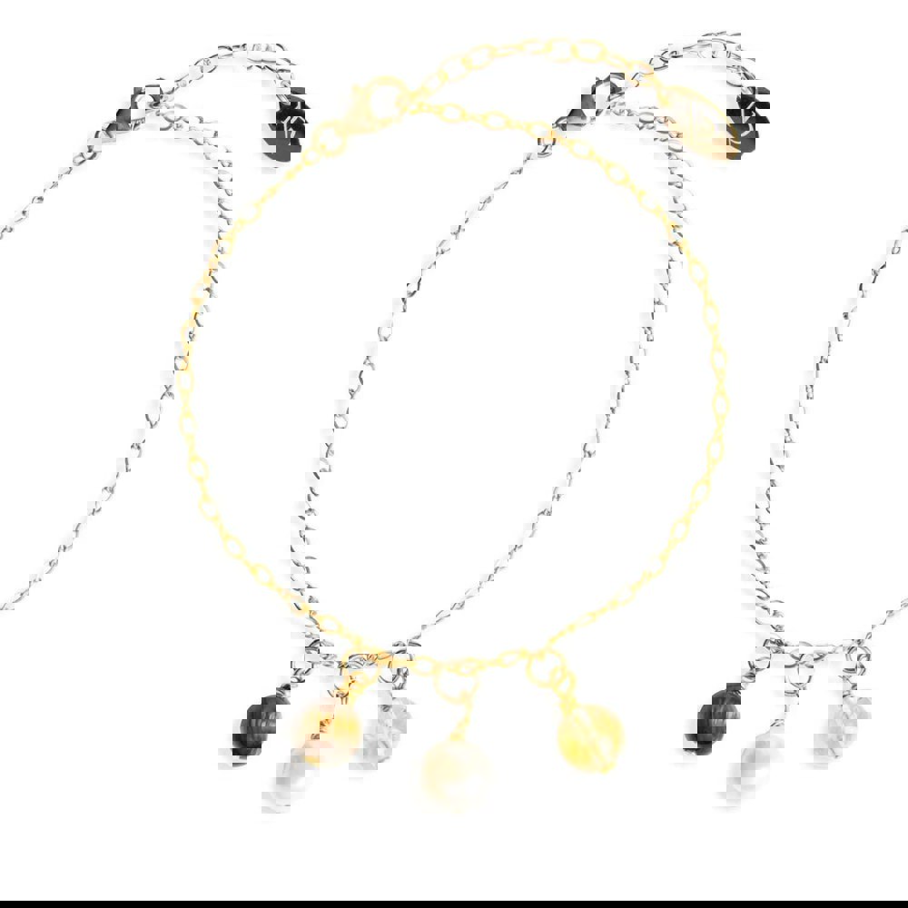 Dainty 14K Gold figaro chain bracelet with 3 gemstones - Tiger's Eye, Pearl and Citrine. Handcrafted together using recycled 14K Gold chains. Add a subtle touch of class & elegance to any outfit for evening & everyday wear.