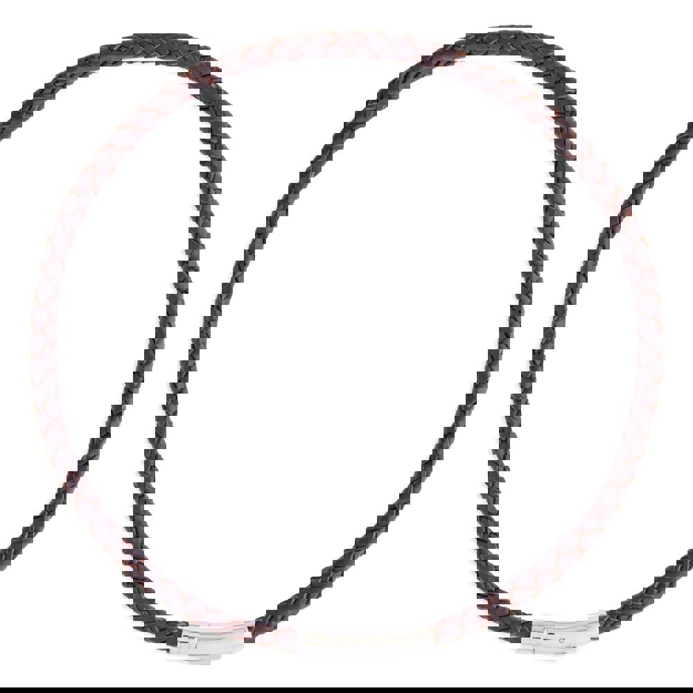 Sleek plaited handmade leather necklace. Inspired by timeless and classic designs, for everyday wear. Our sleek Holborn woven leather necklaces boasts our signature N'Damus London motif.