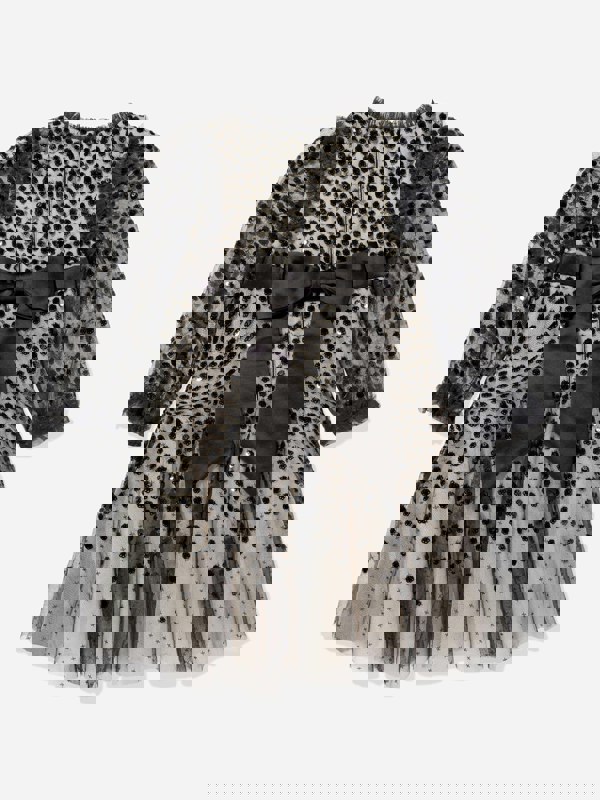 This girls’ dappled sequin long sleeve dress by needle & thread comes in black and is part of the AW2025 collection. Hand-sewn sequins create a shimmering, dappled pattern across the design, bringing a distinctive finish for special occasions. The long sleeves give the silhouette a covered look, while the embellished surface keeps the focus on texture and shine.