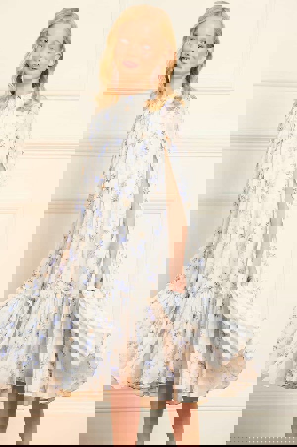 This girls Ophelia ditsy chiffon cape occasion dress from Needle & Thread pairs a loose fit with a floral printed tulle finish. It has frilled tiers and a gathered neckline, with a gathered skirt and frill hem detail. A concealed zip sits at the centre back for a clean closure.