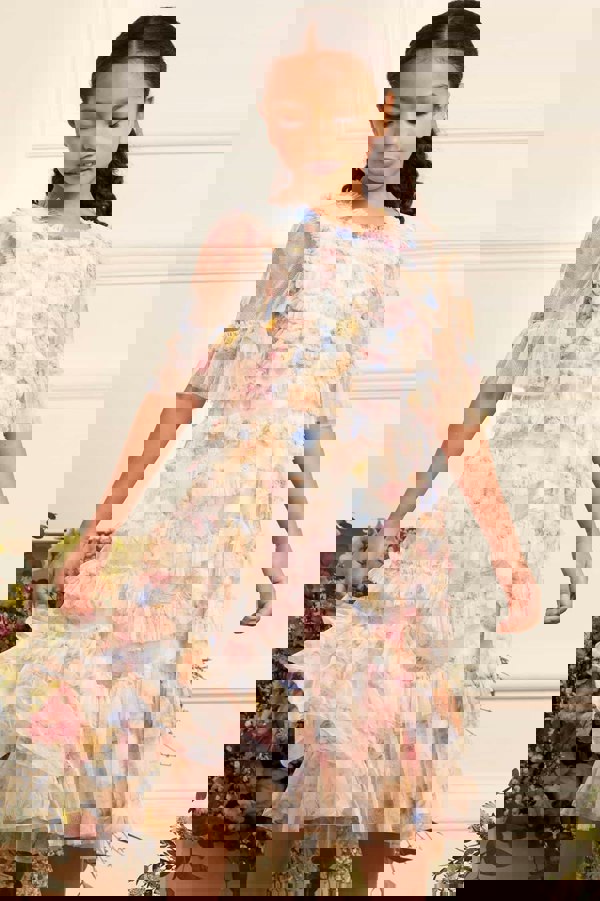 Needle & Thread brings a vintage-inspired silhouette to this girls Marianne dress. The tulle construction is finished with a floral print and a tiered ruffle effect, creating a multicolour look against a white base. Short sleeves and a round neck keep the shape clean, while a zip fastening completes the design.