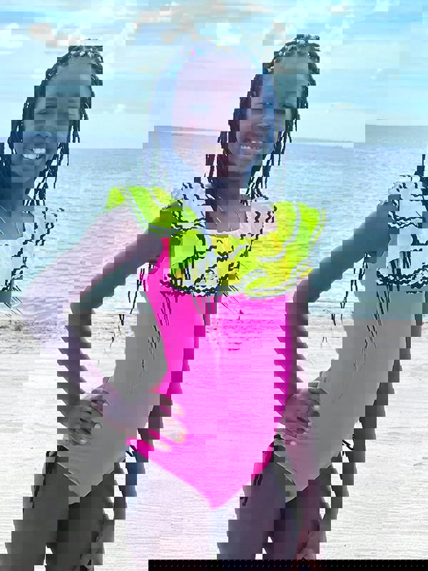 Nessi Byrd Bristol swimsuit for girls in pink. Part of the SS2026 collection, this one-piece brings a playful look in a bright, eye-catching shade.