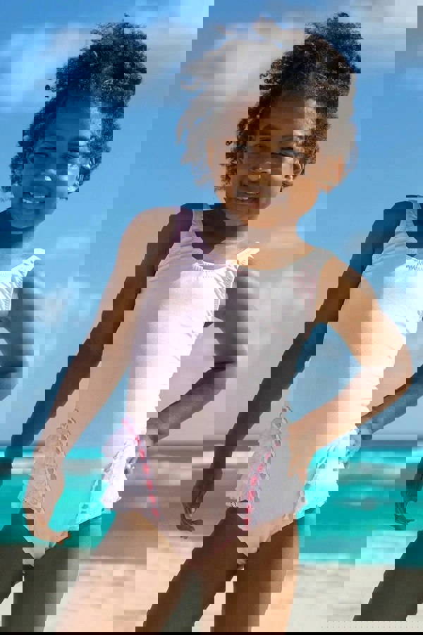 The girls Giulia swimsuit from Nessi Byrd comes in pink for SS2025. Sleek contours and subtle ruffles create a clean, decorative finish, keeping the look simple and distinctive for swim days.