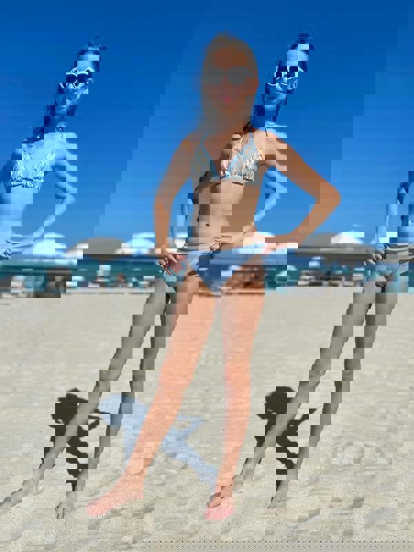The Nessi Byrd Girls Yolanda Bikini in blue forms part of the SS2026 collection. It comes in a deep blue colour and has a classic cut with modern detailing.