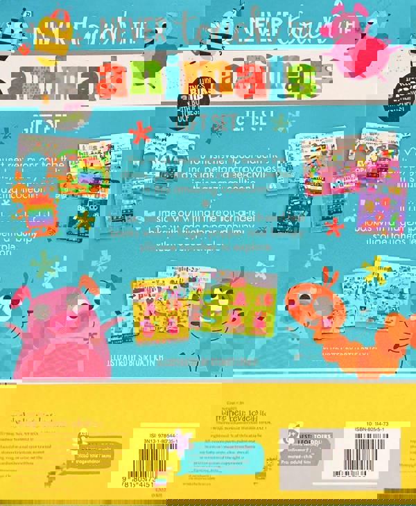 Never Touch the Animals 3 Books Gift Set brings together three touch-and-feel board books featuring dinos, piglets and bugs. Each book includes tactile elements designed for hands-on exploration, combining bumpy silicone touches with a fidget popper to press and pop.