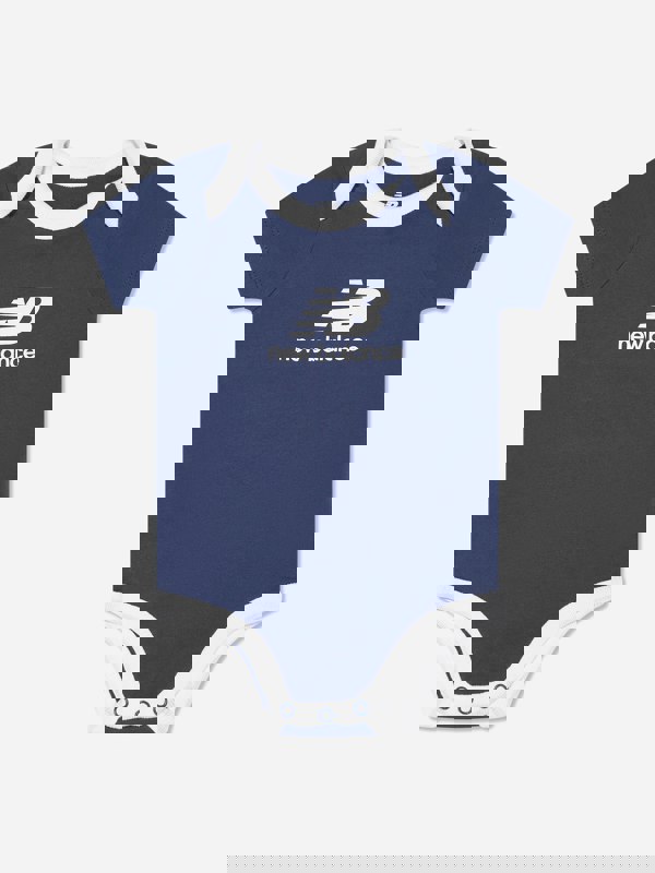 This baby boys bodysuit gift set by New Balance comes in navy for AW2024. The set is presented as a gift set in a rich blue tone.