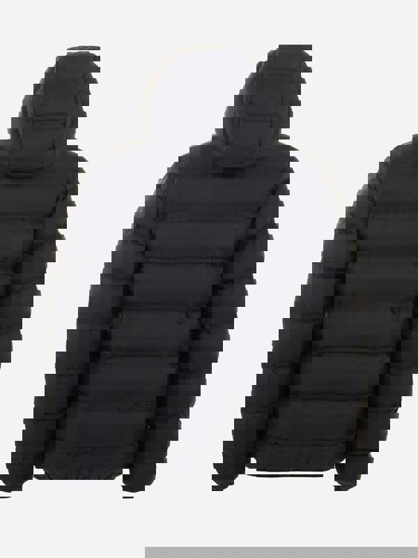 This boys Bond quilted jacket from New Balance comes in black with a puffer-style, quilted construction. The outer is made from 100% nylon and finished with elastic binding. A sporty NB logo completes the look.