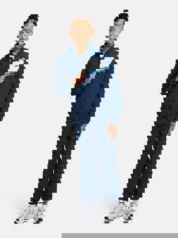 This boys premium panelled track jacket by New Balance comes in navy for SS2026. The panelled design and deep navy colour create a clean, classic look, finished with subtle New Balance logos.
