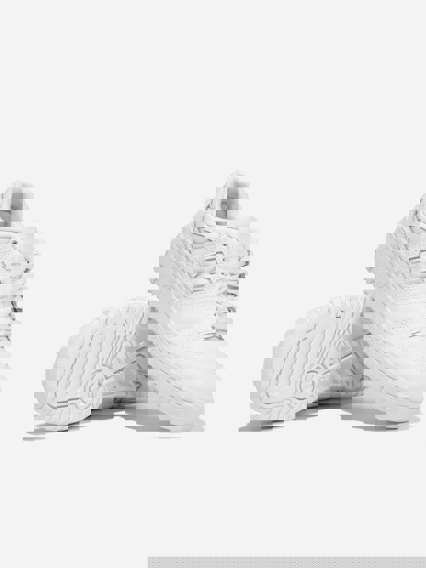 New Balance Kids 550 trainers in white. The upper combines leather and textile, with a textile lining and textile insole. Underfoot, an abrasion-proof rubber sole provides a durable finish. Cold padding adds extra cushioning within the shoe.