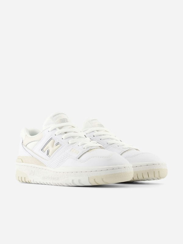 These New Balance Kids 550 trainers come in white with a vintage basketball look and a low-top silhouette. The upper combines leather and synthetic materials, with mesh panels set near the padded collar and a standout N logo at the side.