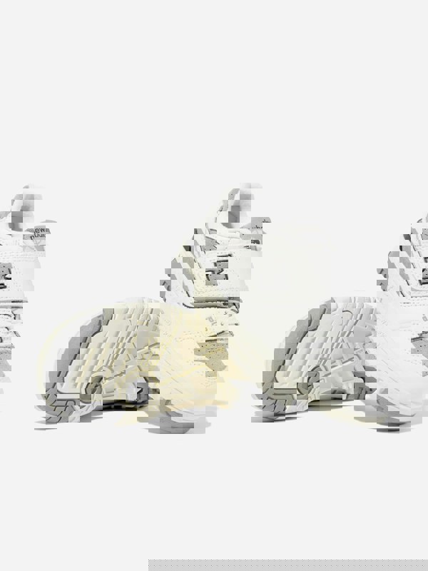 New Balance Kids 550 trainers in white with a low-top profile and lace-up fastening. A round, closed toe and panelled upper create a clean, structured look, finished with signature branding at the sides, tongue and midsole.