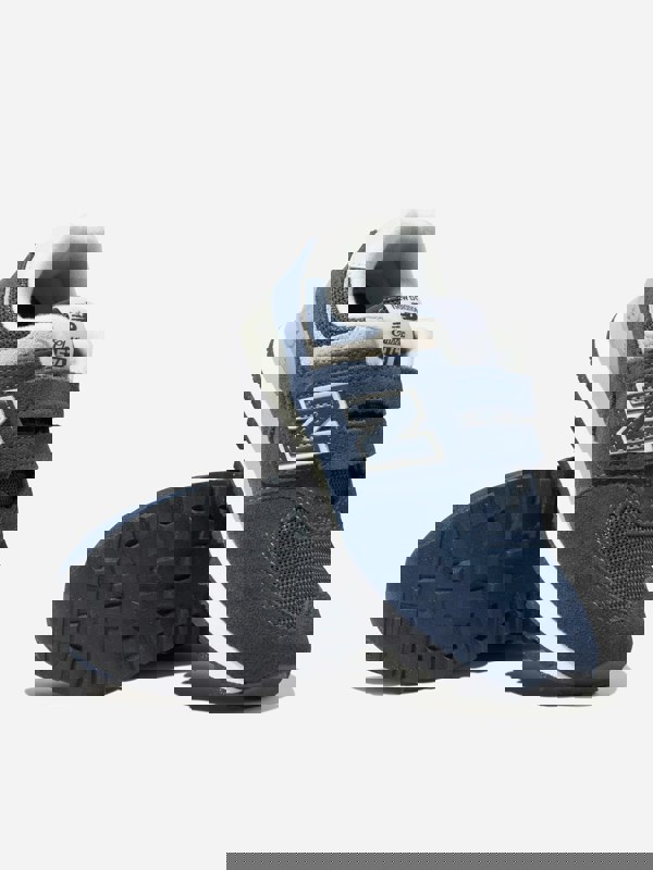 New Balance Kids 574 trainers in blue bring a classic silhouette into a practical hook & loop style. The leather upper keeps the look clean and structured, finished with the iconic ‘N’ at the side. Lightweight EVA foam cushioning sits in the midsole and heel, while a durable rubber outsole completes the pair.