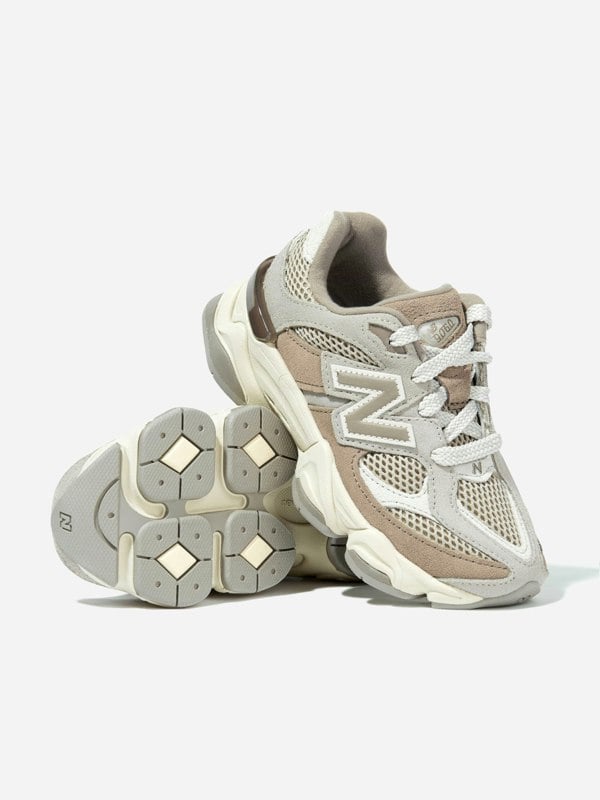 New Balance Kids 9060 Trainers in brown offer a low-top profile with a lace closure. Made for youngsters, this unisex pair keeps the look clean and simple for everyday wear.
