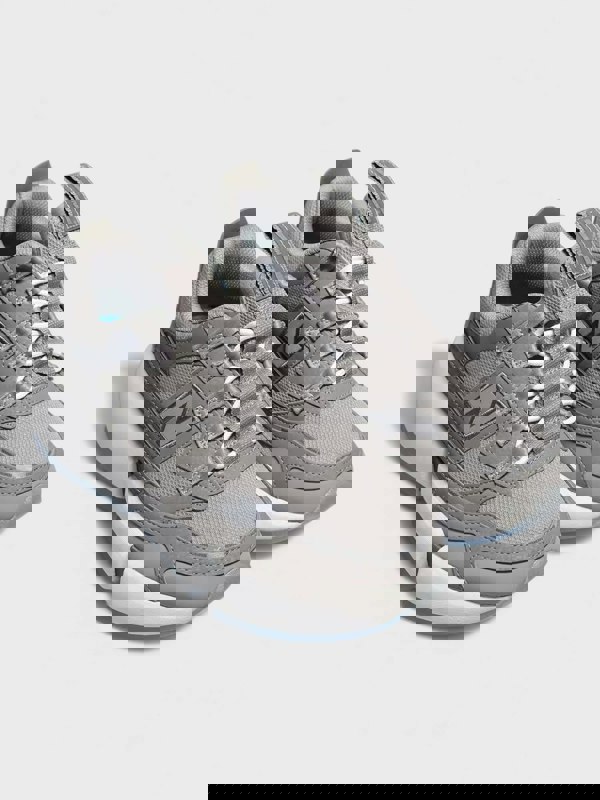 This collaborative sneaker merges innovative design with refined aesthetics, featuring a sleek grey colorway that complements any modern wardrobe.