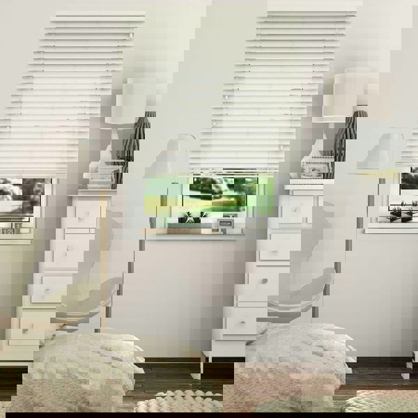 NewEdgeBlinds Misty White Smooth Finish Faux Wood Venetian Blinds with Strings (130cm drop)