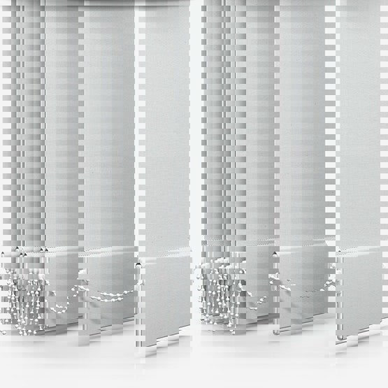 This vertical blind comes in a variety of sizes and features a modest striped pattern in a bright white tone