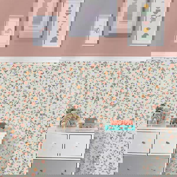 This beautiful wallpaper showcases pretty ditsy florals in a warm colour palette of lavenders, peaches and pinks. This subtle wallpaper will add colour and warmth to any room. Printed on a matt paper for a modern feel, this wallpaper is also paste the wall making it easy to hang.