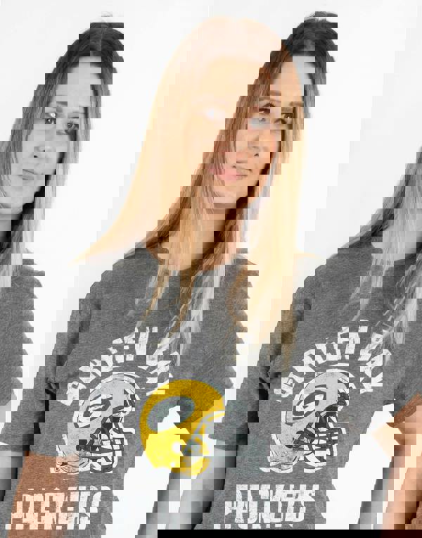 Support your team in style with this Green Bay Packers t-shirt for ladies! Officially licensed and exclusive to Vanilla Underground, the mixed materials t-shirt comes in grey featuring a yellow Packers helmet print as seen and worn by the team, making a must-have gift for Super Bowl celebrations, Mother's Day, birthdays, and Christmas