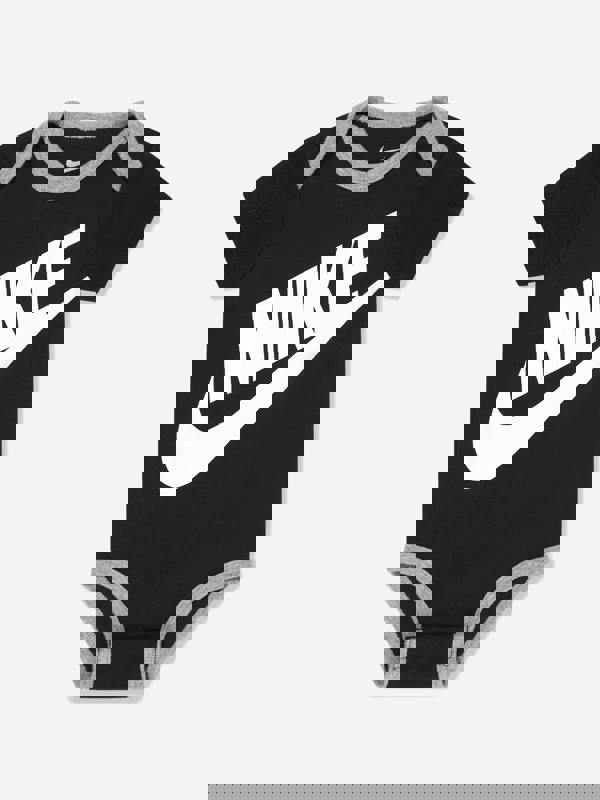 This Nike baby boys bodysuit set comes in black and includes three pieces: a hat, a bodysuit and matching booties. The set carries the Futura logo and the iconic Swoosh logo for a recognisable Nike finish.
