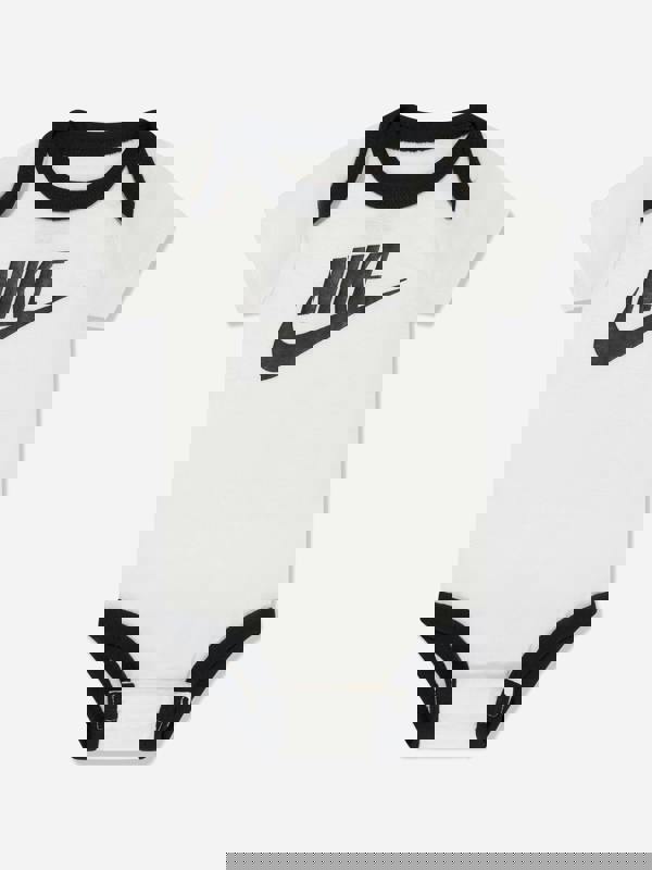 This Nike baby boys bodysuit gift set comes in white and includes three coordinated pieces. The set contains a hat, a bodysuit and booties, finished with the iconic Swoosh logo.