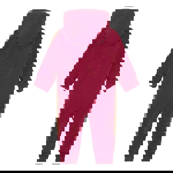 This Nike baby bodysuit is made from a cotton and polyester blend in French terry fabric. It has a contrast design with logo and Swoosh detailing, finished with taped accents. The neckline combines a crew neck with a hooded style, and the long sleeves are completed with ribbed cuffs.