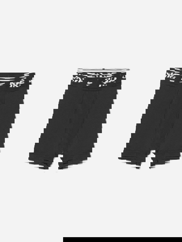This set of three boys’ boxer shorts from Nike comes in black and is made from a lightweight cotton blend with added elastane. Each pair includes a taped, elasticated waistband and flatlock seams for a clean finish. Signature Nike branding completes the look, with a logo and Swoosh detail.