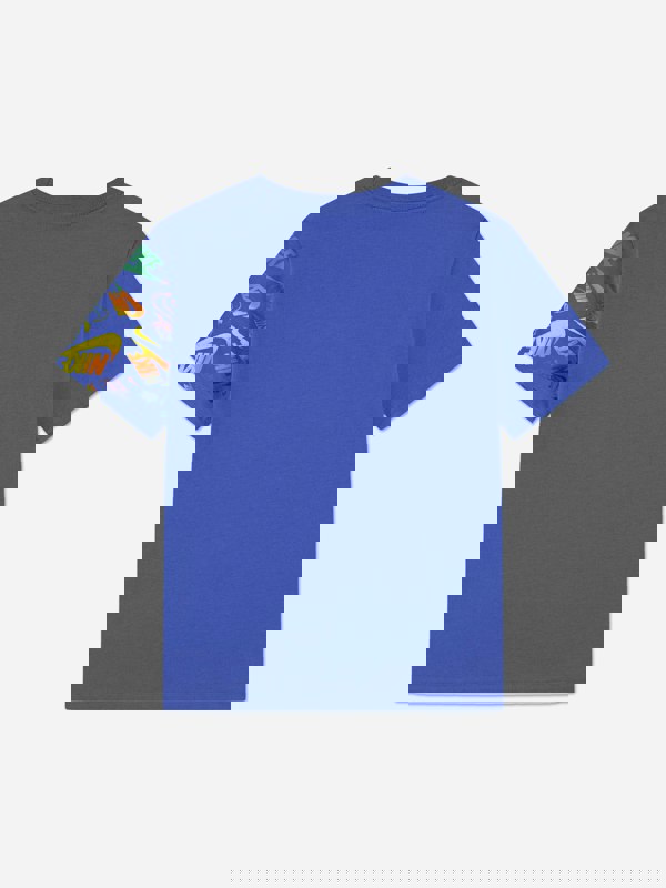 This Nike boys’ T-shirt comes in blue with a short sleeve silhouette and a tagless crewneck. The design centres on the iconic Swoosh logo, placed in different multicoloured positions for a bold branded finish.