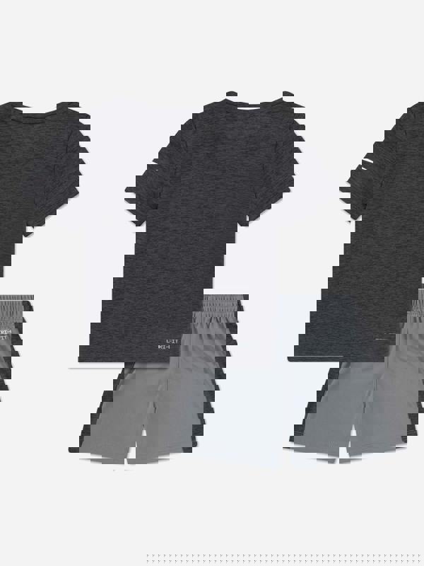 Nike Boys Dropset T-shirt and shorts set in grey from the SS2026 season. This two-piece set includes a T-shirt and matching shorts, finished with Nike branding.