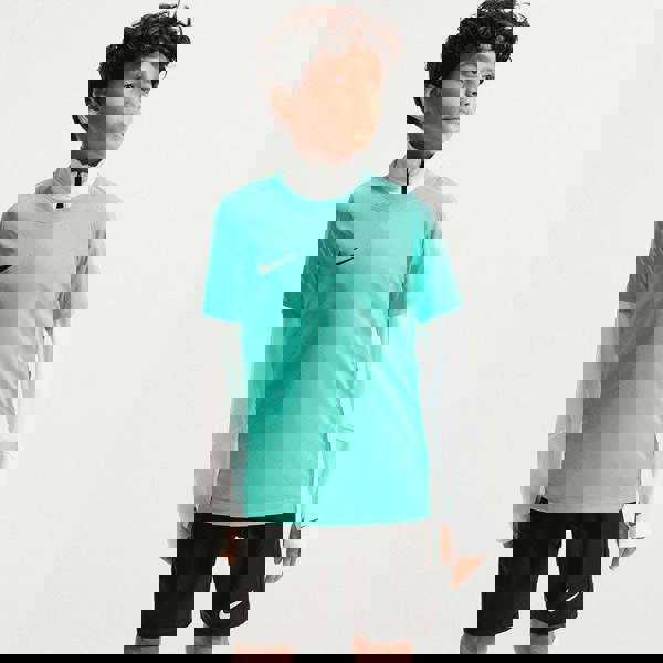 A familiar choice for training, the Nike Park 26 Dri-FIT T-shirt jersey brings a clean, sporty look with the brand’s signature finish. This unisex top is marked by an embroidered Nike Swoosh on the right chest and comes in turquoise for a standout kit colour.