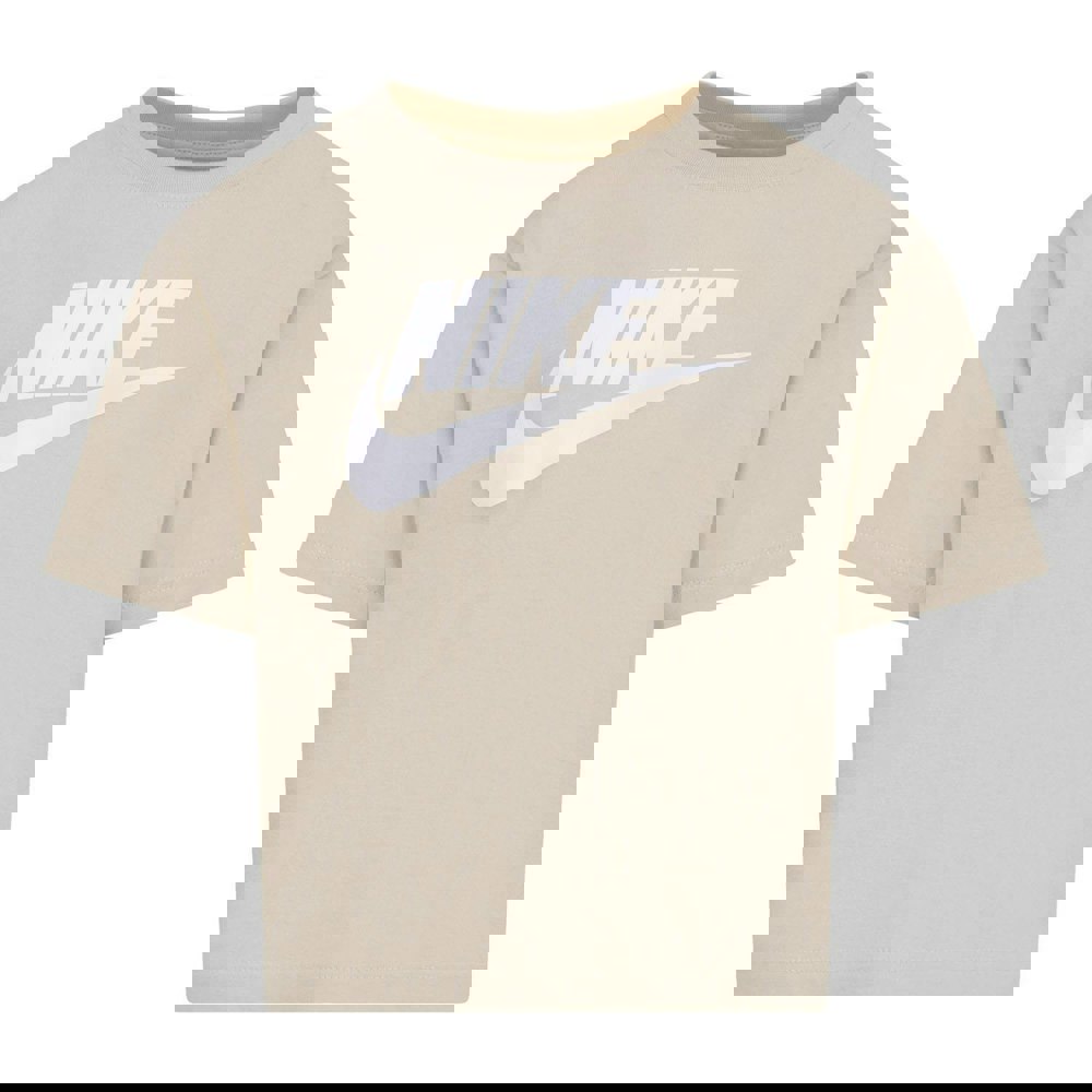 This Nike childrens/kids Club boxy T-shirt comes in a sand colourway with a plain finish and logo detail. Made from a soft-touch jersey blend of 60% cotton and 40% polyester, it has a crew neckline and short sleeves for a clean, simple silhouette.