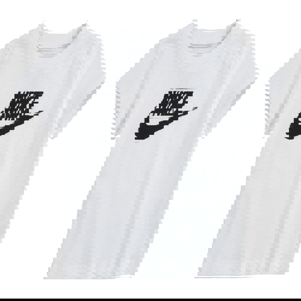Made from 100% cotton, this Nike childrens/kids Futura T-shirt comes in white with a Swoosh design. It has a crew neck and short sleeves, finished in a regular fit for a clean, simple look.