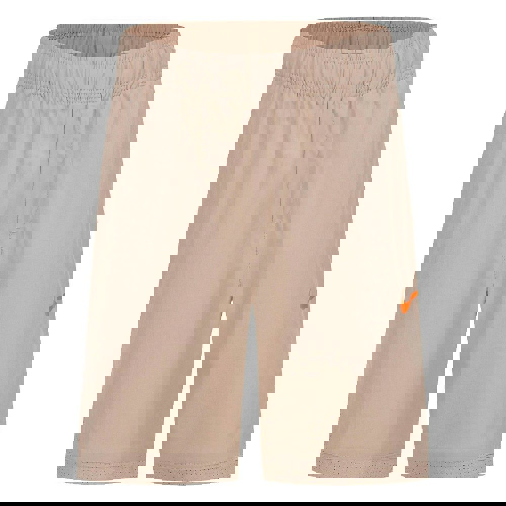 These Nike childrens shorts come in beige twill with a plain finish and logo detail. The woven fabric blends 86% polyester with 14% elastane and includes a mesh lining. A comfort fit and lightweight handle keep the design simple and practical.