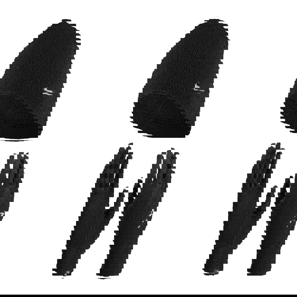 The Nike Fleece Logo Beanie & Gloves Set is a coordinated cold-weather accessory set designed for everyday wear. Finished in black, it offers a clean, understated look with logo detailing and reflective design elements for added visibility in low light.