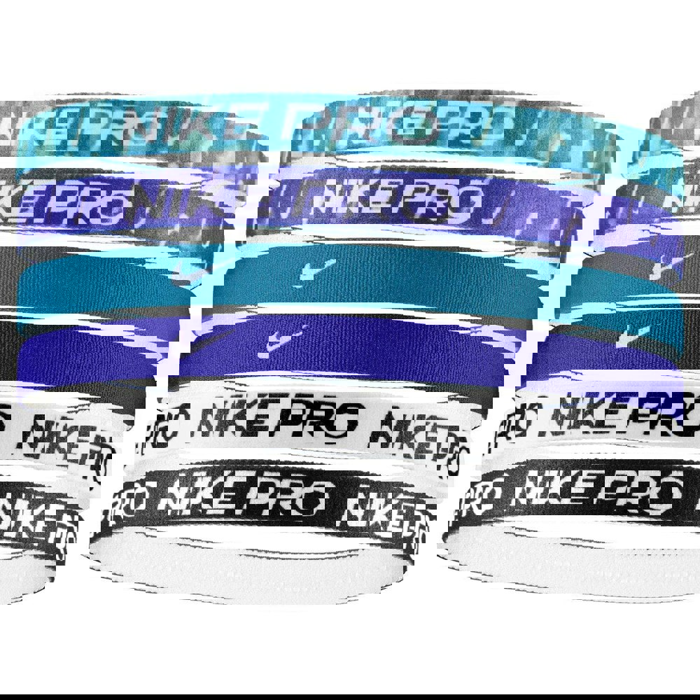 The Nike Flex Classic Headband (Pack of 6) is designed to offer a secure, flexible fit for everyday wear. Made with an elastic, stretch material blend, it is suited to active routines where comfort and ease of movement matter. With a mix of black, white and blue options, it’s simple to rotate styles across training sessions or keep spares in your kit.