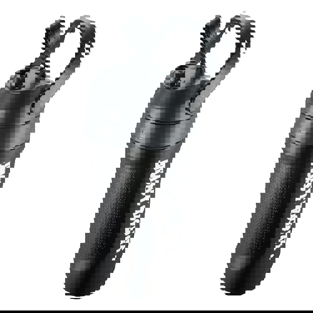 Finished in black and white with a text design, this bottle includes a hand grip and a hook handle for convenient carrying and handling. A twist lid helps keep the contents securely contained during everyday use.