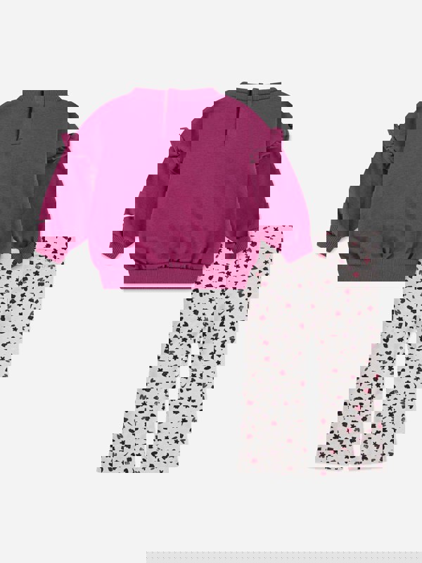 This piece is presented as an essentials set and comes in a purple colourway with an all-over pattern across the trousers. No further material, sizing or care details are provided in the source.