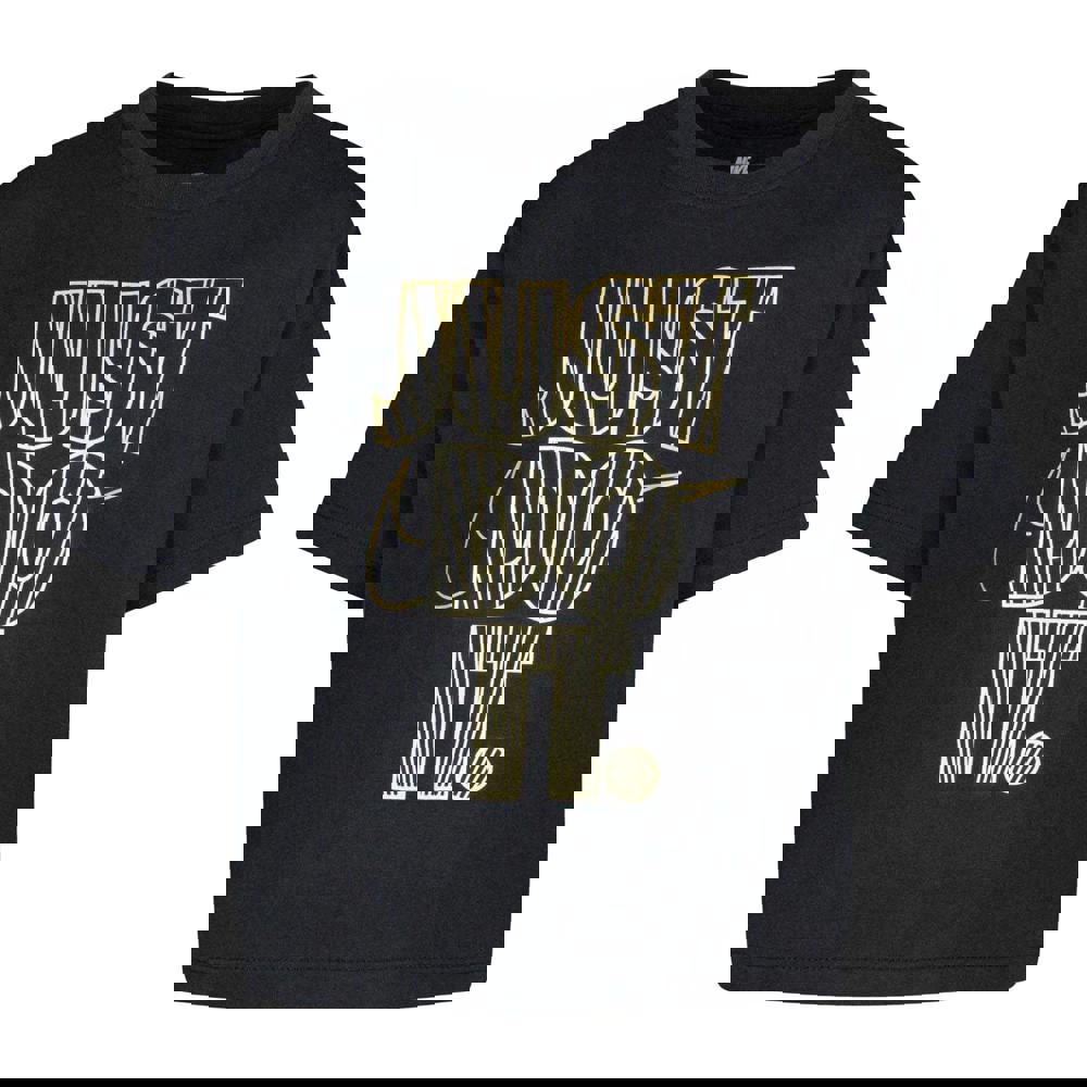 This girls’ Nike Shine boxy T-shirt comes in black jersey knit with a soft-touch feel. Made from a cotton and polyester blend, it has a crew neck and short sleeves with a drop-shoulder shape. The front is finished with a printed logo and text, with shine and stripe detail for added contrast. A tagless neckline keeps the inside clean and simple.