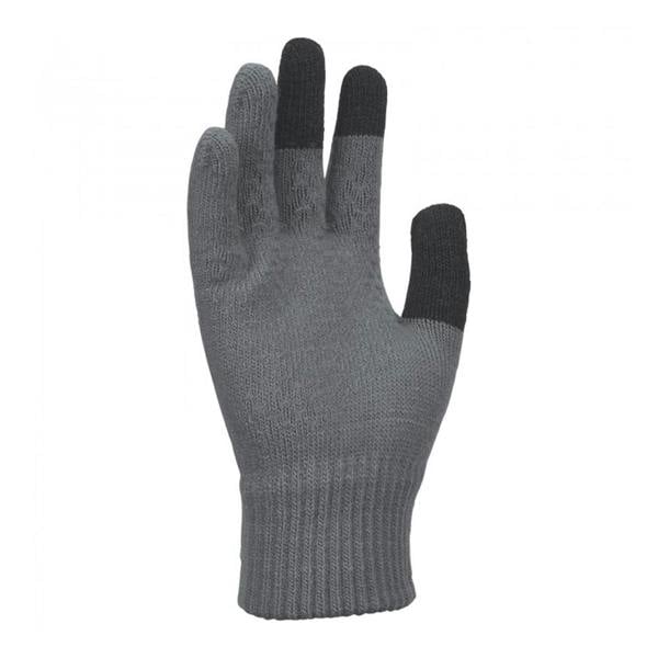 These Nike kids’ knitted gloves come in grey with a soft-touch finish and added stretch. A ribbed cuff provides a neat, secure edge, while silicone grip supports handling. The touchscreen thumb allows use with compatible devices without removing the gloves. A logo detail completes the design.